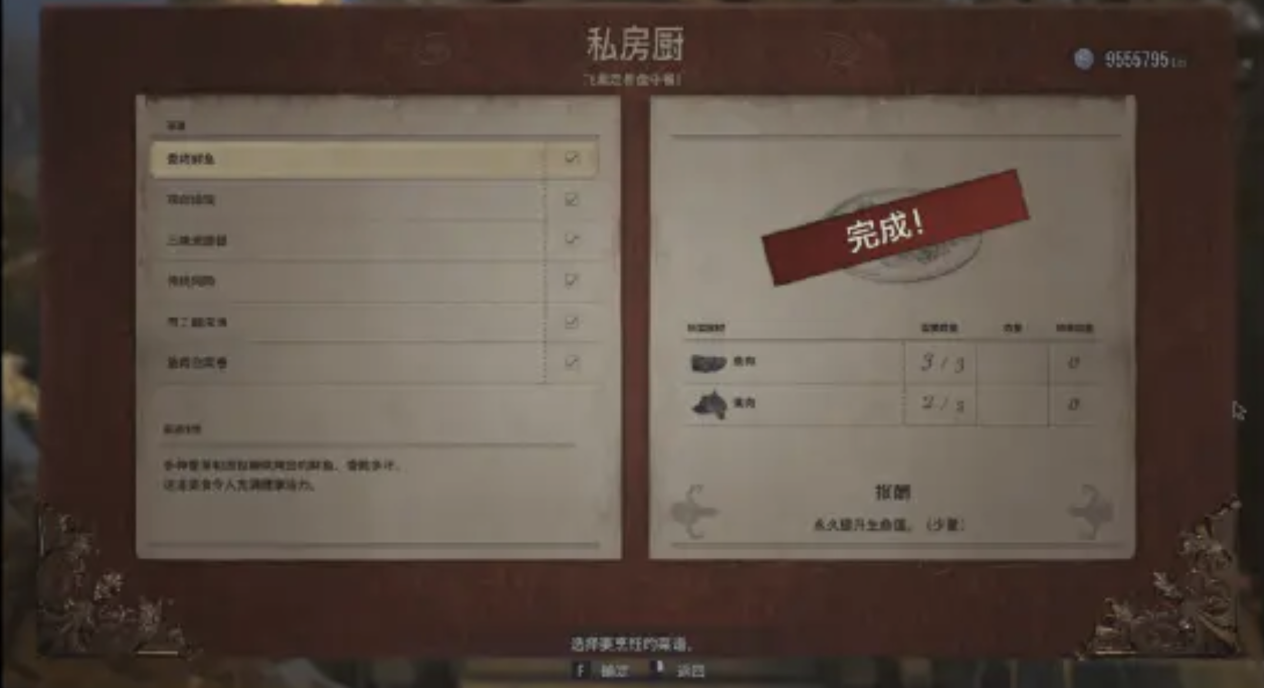 如果说宝物和寻宝系统极大地充实了《生化危机8》探索,狩猎与烹饪的引入则是让《生化危机8》的探索体验更上一层楼。狩猎与烹饪系统是《生化危机8》最为独特的创新。尽管在《生化危机4》《生化危机5》中已经有了狩猎的雏形,但《生化危机8》则是将其完善且发扬光大。大量禽类、家畜、鱼类分布在村庄的各个角落,玩家通过探索,寻找并狩猎这些动物可以取得禽肉、畜肉、鱼肉等食材,将一定的食材交给公爵,公爵将会为玩家烹饪出许多村庄特色美食,给玩家提供永久的增益加成。