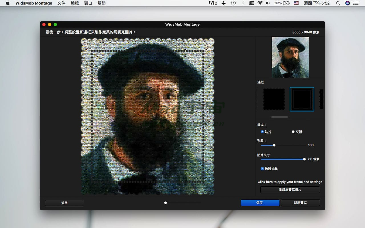 无论您需要添加特殊框架到马赛克,还是使用不同的马赛克模式,都可以选择不同的框架以使镶嵌图片变得特别。程序支持平铺模式和WidsMob Panorama隔行模式,您可以轻松获得所需的效果。